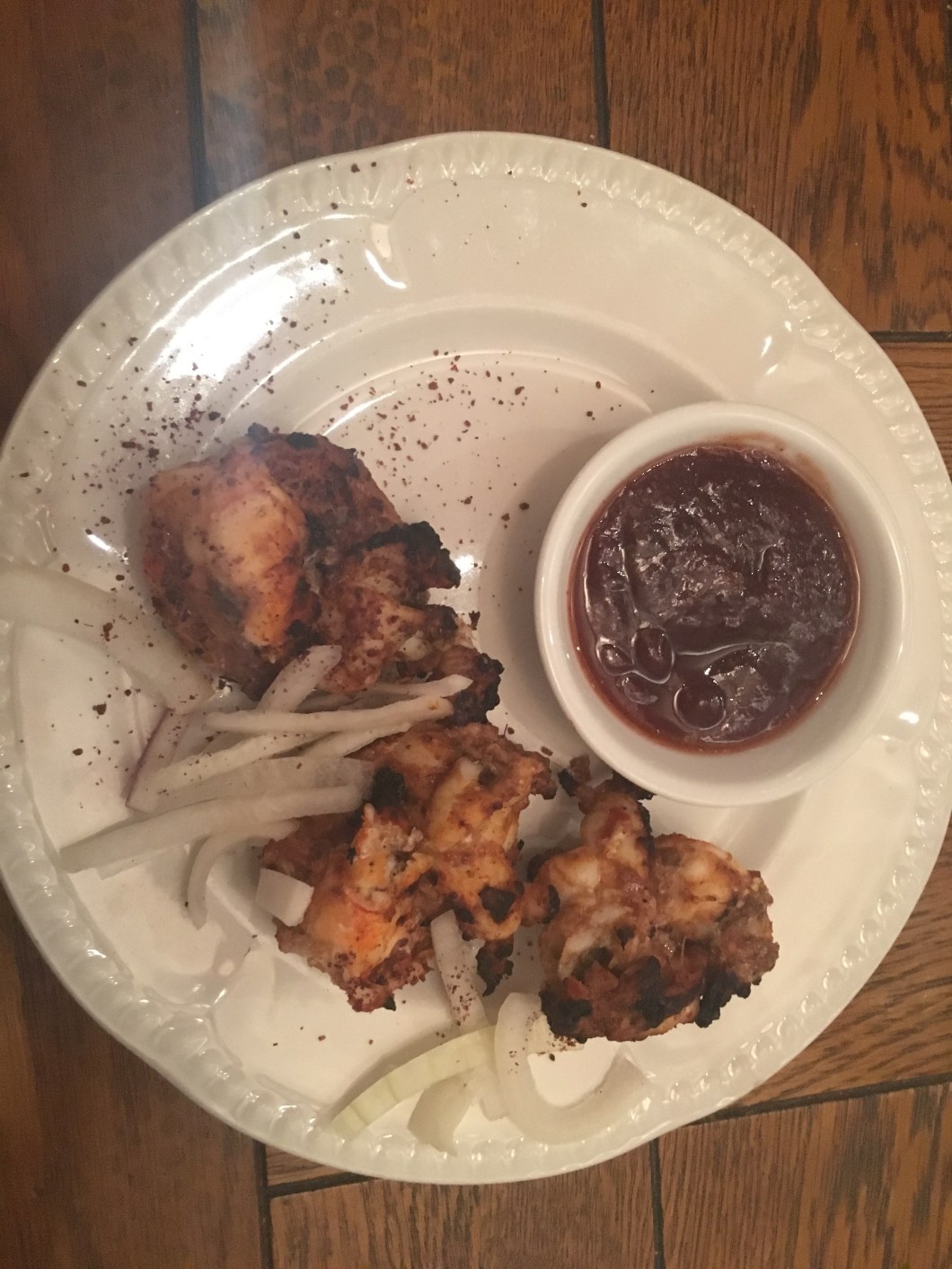 As a starter, I ordered grilled king prawns, which took about 10-15 minutes to cook. Not an issue for me as I could enjoy the prosecco and chat with Robert. When the prawns and the chicken tikka boti arrived, we were absolutely delighted.