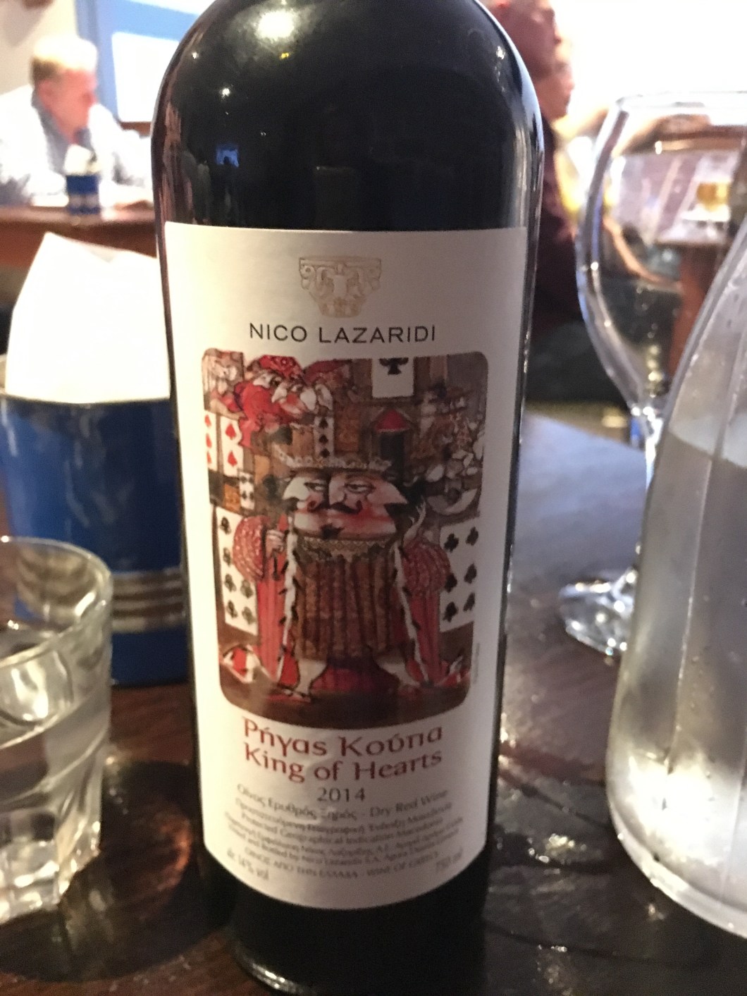 All this was accompanied by some lovely prosecco, Mythos beer and a nice bottle of ‘King of Hearts’ red wine from Nico Lazaridi (I understand he is one of the best wine producers in Greece).