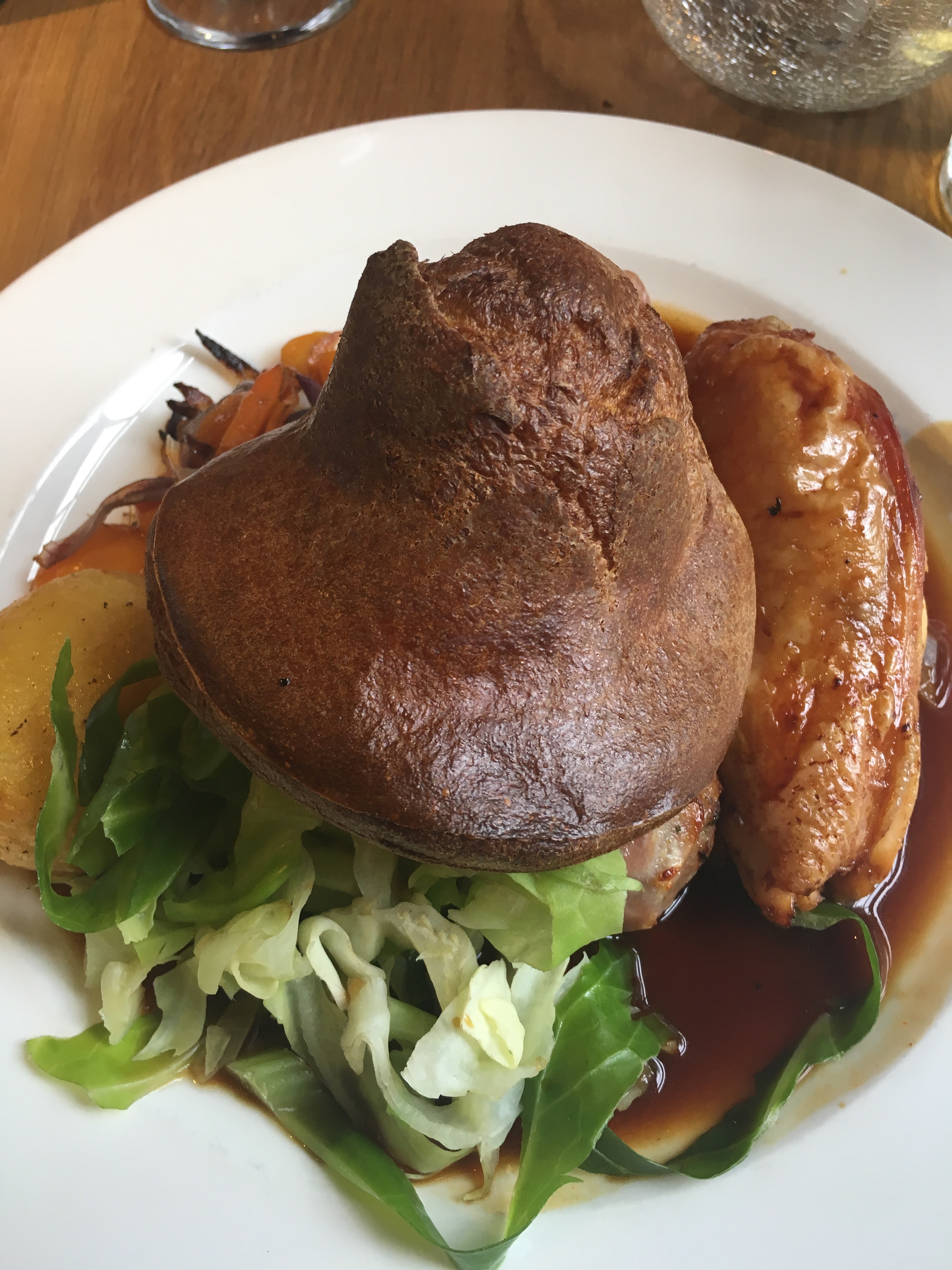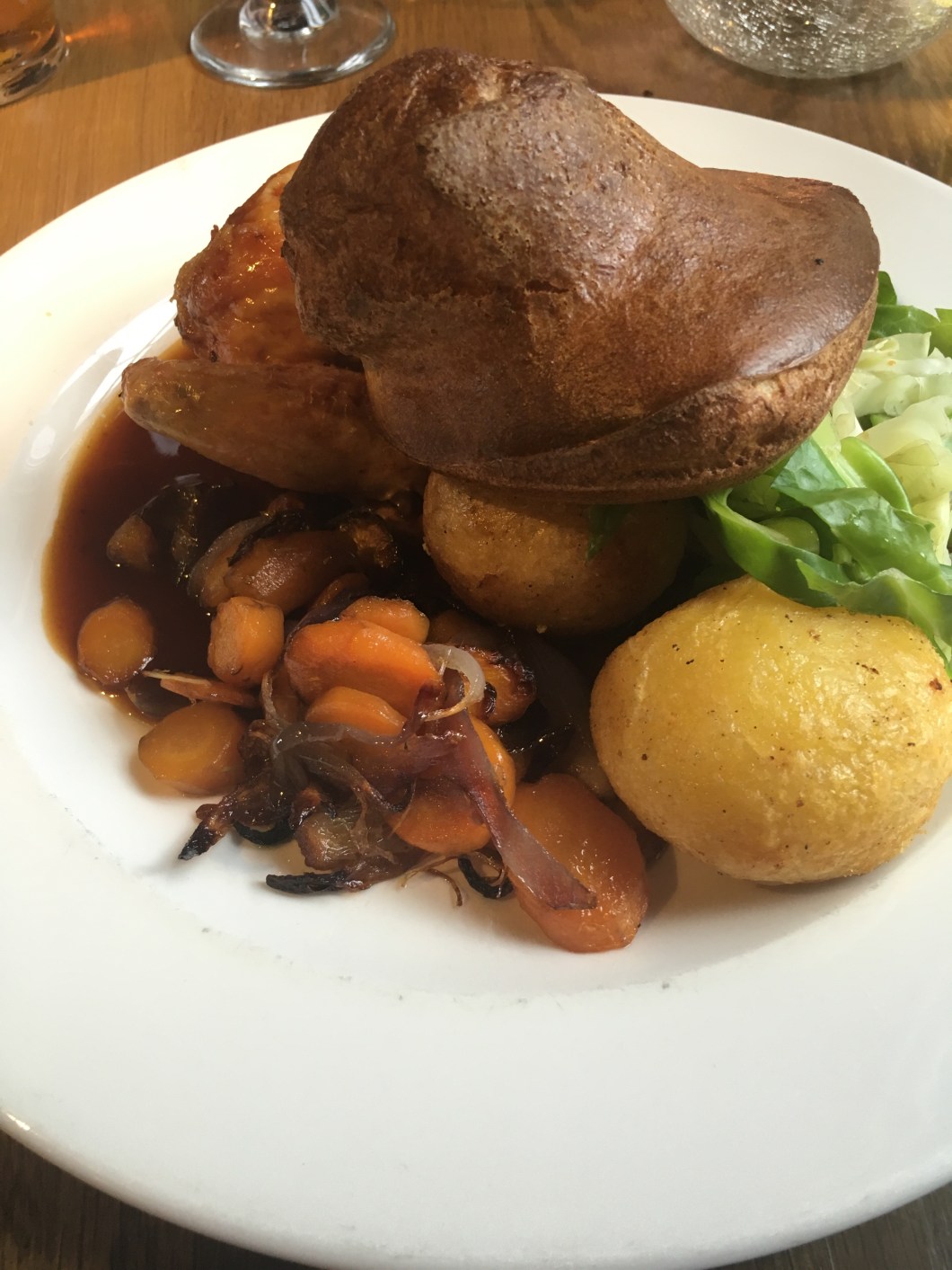 We ordered Sunday roast (what else on a Sunday!) – beef for Robert and chicken for me. As you can see from the photos, portions were very generous and the presentation was outstanding! And I can guarantee that everything, from the meat to the vegetables to the Yorkshire pudding, was cooked to perfection and incredibly tasty.