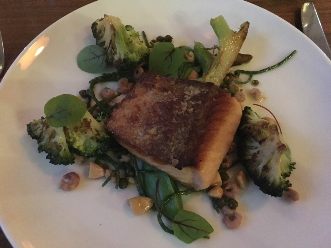 As a main, I had organic salmon with broccoli, samphire and almonds – very tasty and light. The fish was cooked to perfection.