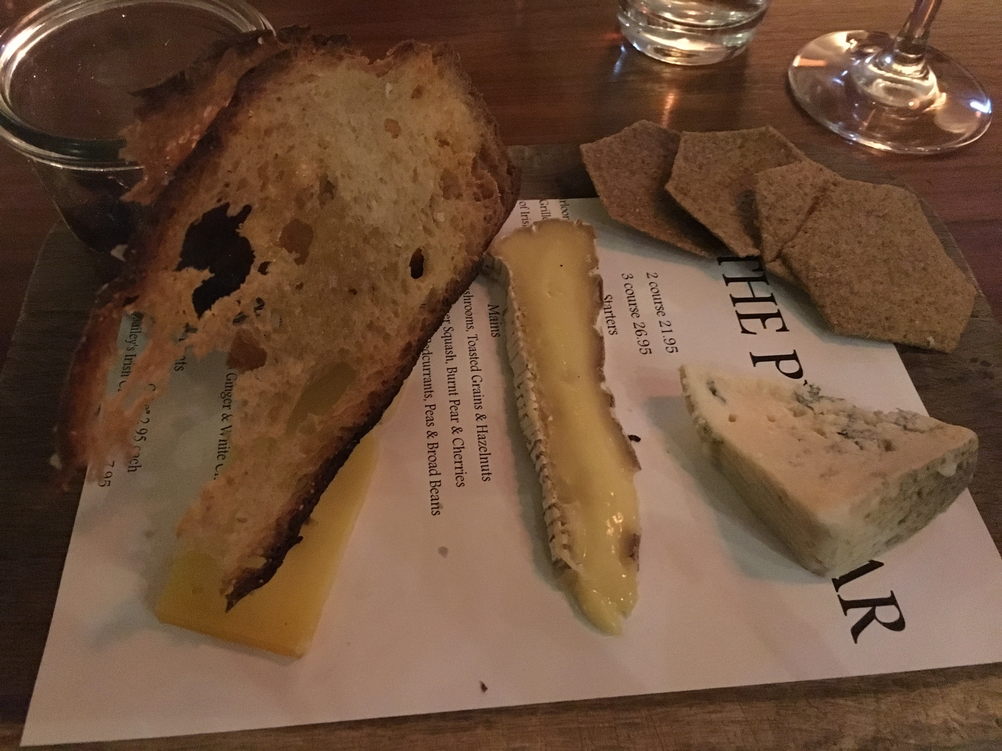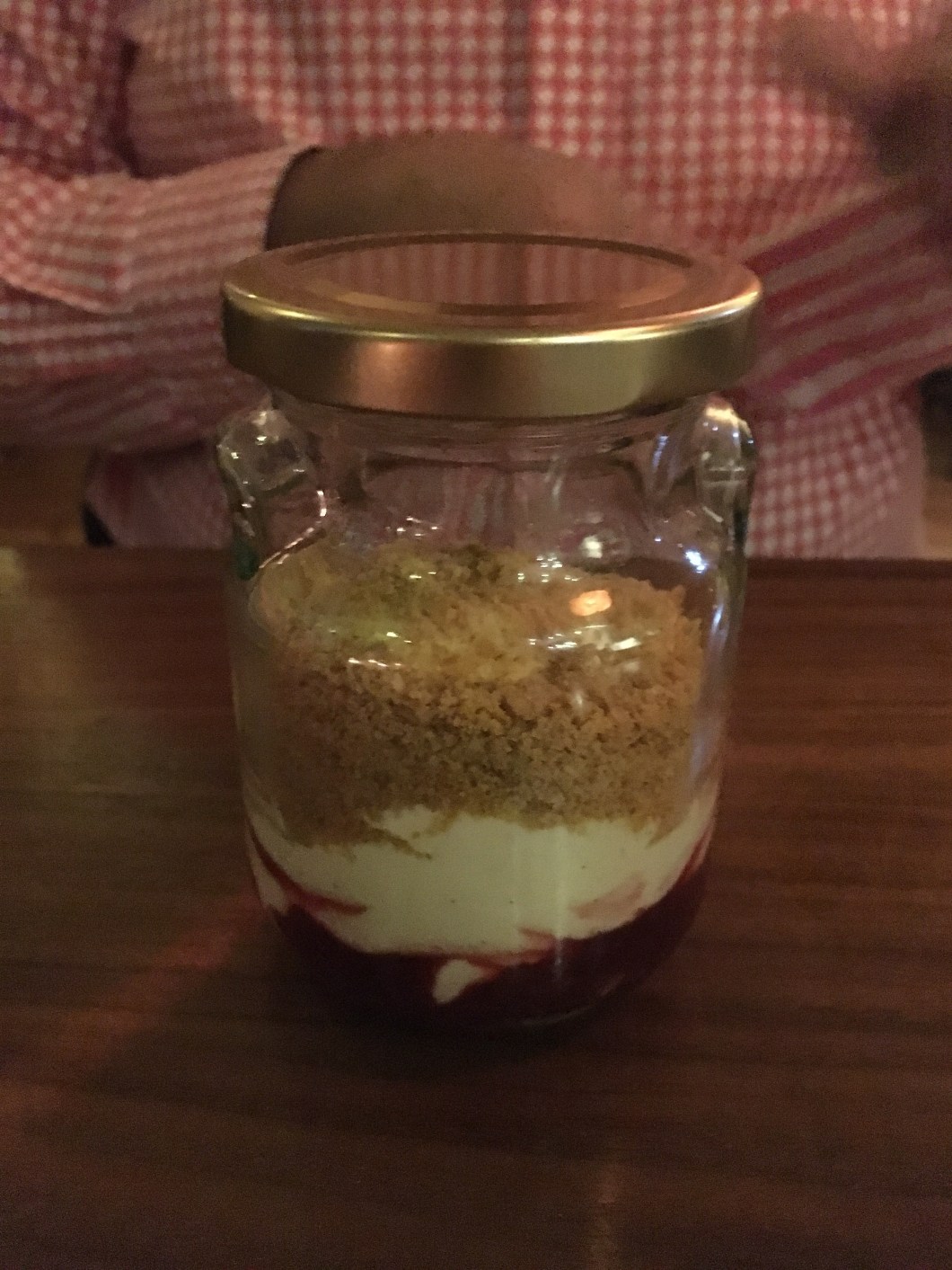 As dessert, I ordered the usual selection of cheese (an Irish trio in this case) and Robert had a deconstructed vanilla cheesecake with berry jam and ‘Hob Nob’ biscuit. Again, the presentation was absolutely fantastic – it came as a wrapped little jam jar. And he really enjoyed it.