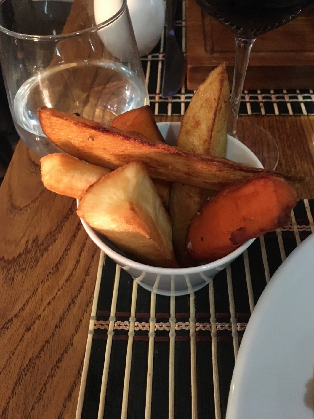 Robert was also very happy with his main: a rather large portion of incredibly soft BBQ ribs. We also had some potatoes, sweet potatoes and plantain (a Caribbean speciality) wedges. I found the plantain wedges a little too dry for my taste, but they were very tasty.