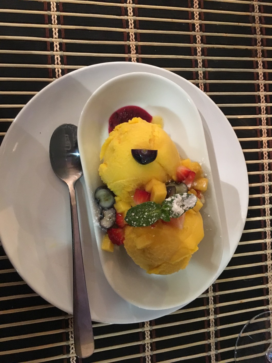 For dessert, we had lemon tart and an award-winning mango sorbet. Again, the colours were fantastic and the flavours so refreshing after the main course.